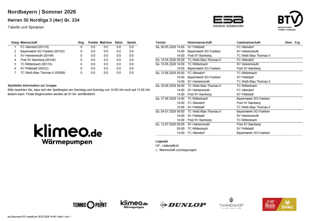 Tabelle und Spielplan