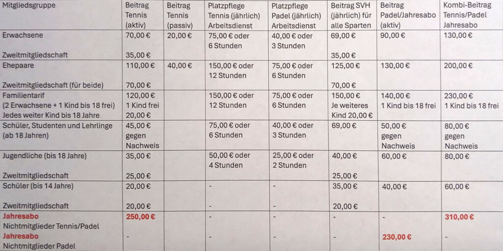 – Für Erwachsene Fremdspieler je 5,00 € pro Person und Passivmitglieder 3,50 € pro Person
